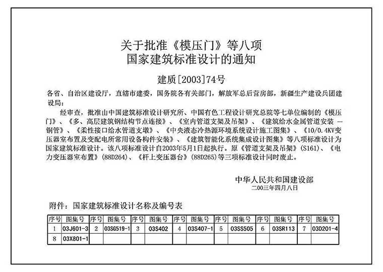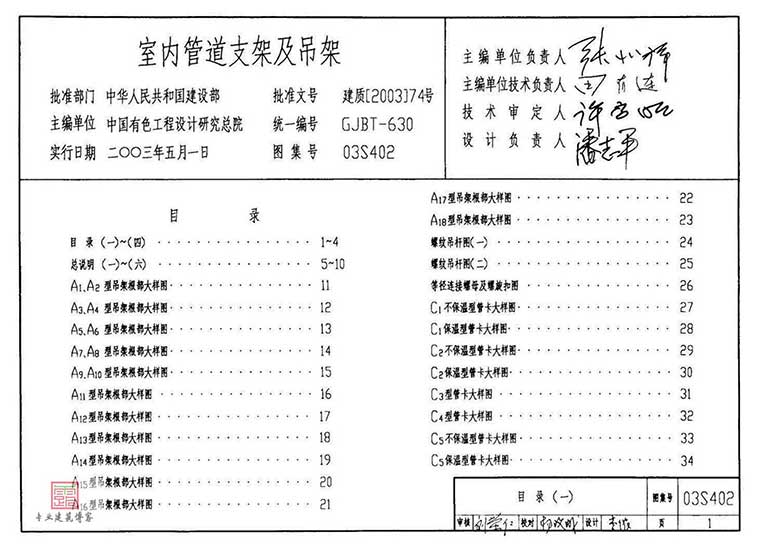 03S402《室内管道支架及吊架》,2003年04月08日发布,2003年05月01日实施,中国计划出版社出版。