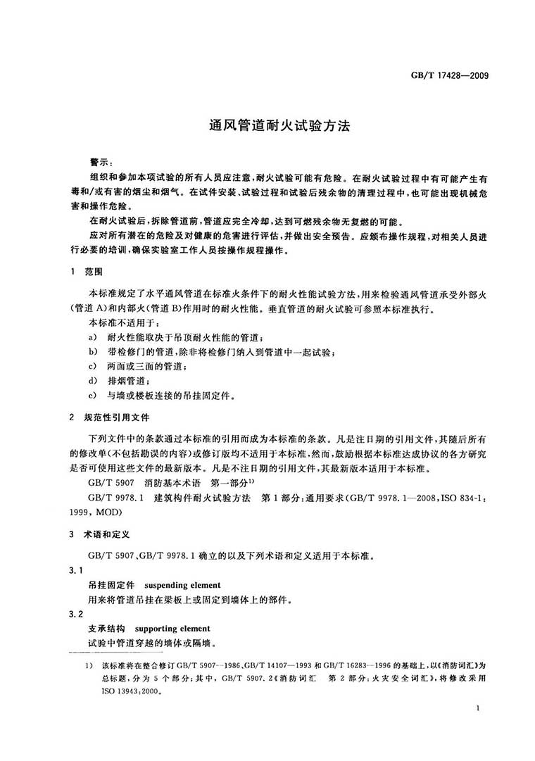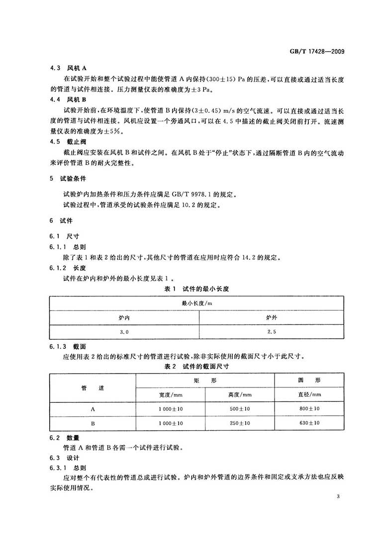 GB/T17428-2009《通风管道耐火试验方法》