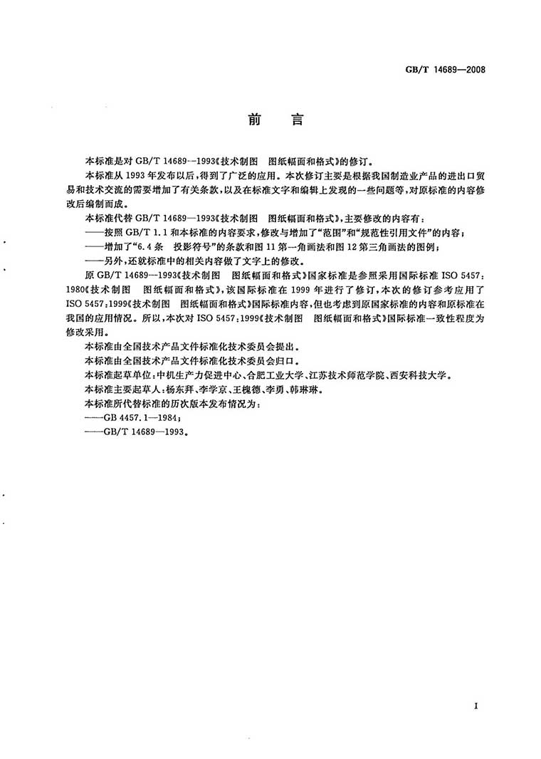 GB/T14689-2008《技术制图 图纸幅面和格式》,替代GB/T14689-1993,2008年06月26日发布,2009年01月01日实施,中国标准出版社出版。
