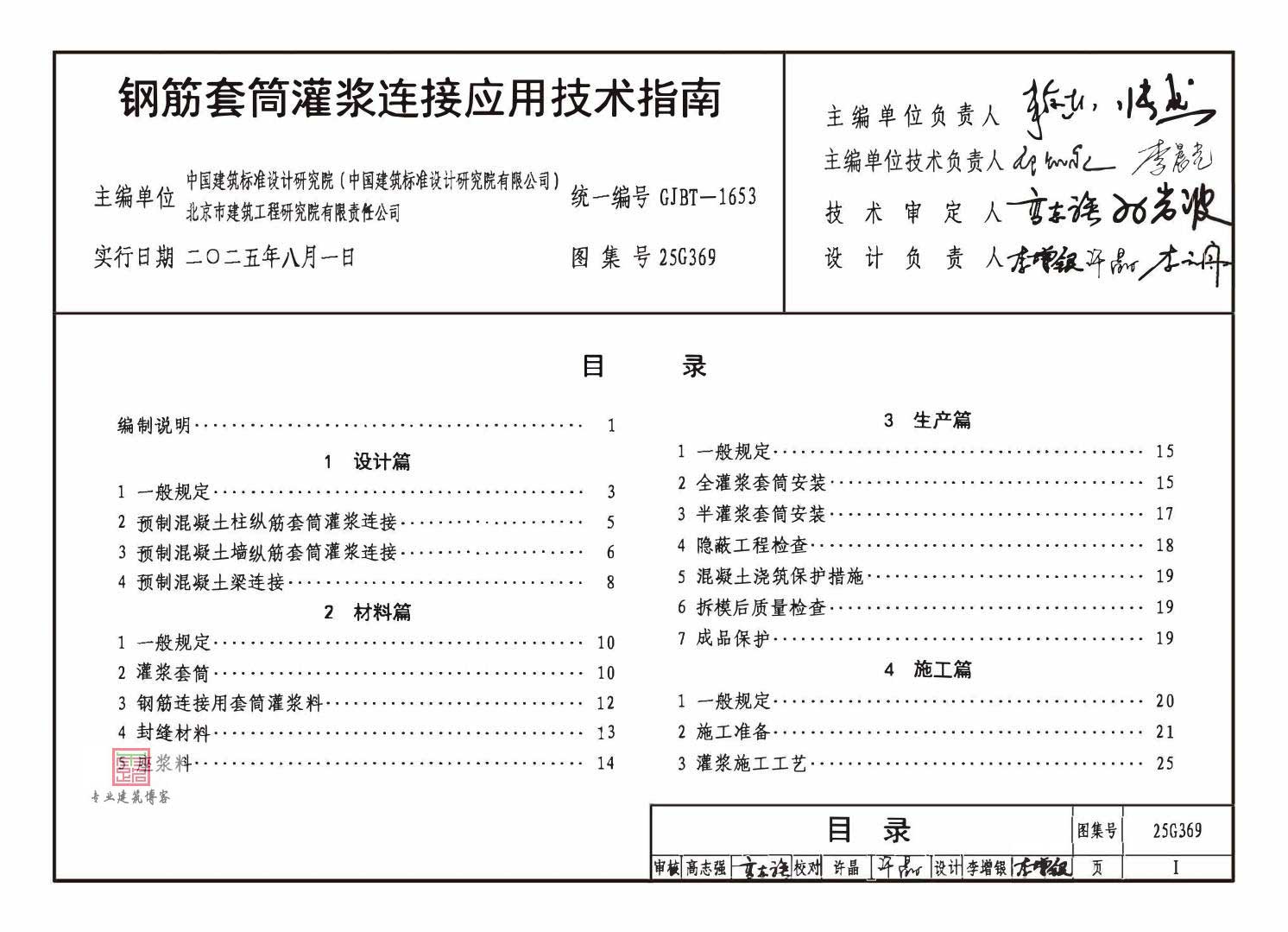 25G369《钢筋套筒灌浆连接应用技术指南》,2025年08月01日实施,中国计划出版社出版。