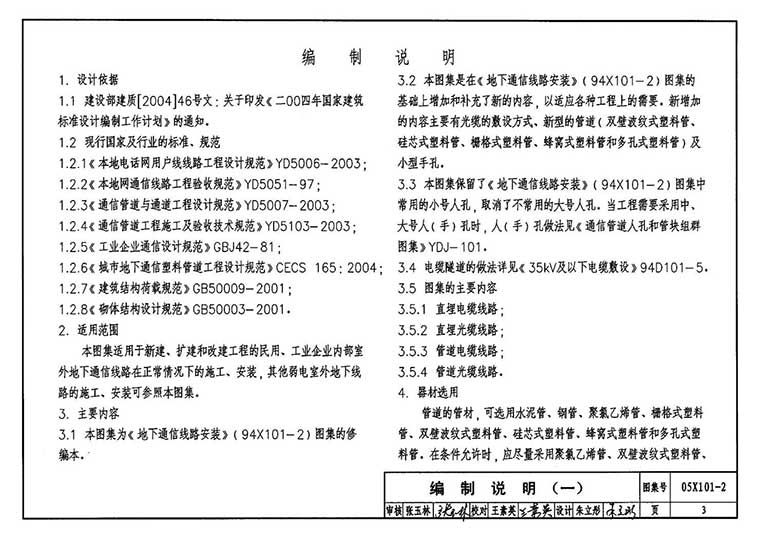 1、本图集为《地下通信线路安装》(94X101-2)图集的修编本。