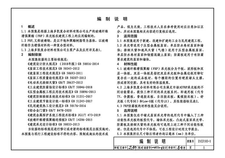 21CJ103-1《玻璃纤维增强聚酯(FRP)板材应用构造(一)——采光带、通风、消防》