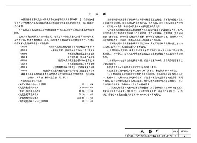 本图集适用于非抗震和抗震设防烈度为6~8度地区的装配式混凝土剪力墙结构住宅施工图的设计,其他类型建筑可参考使用。