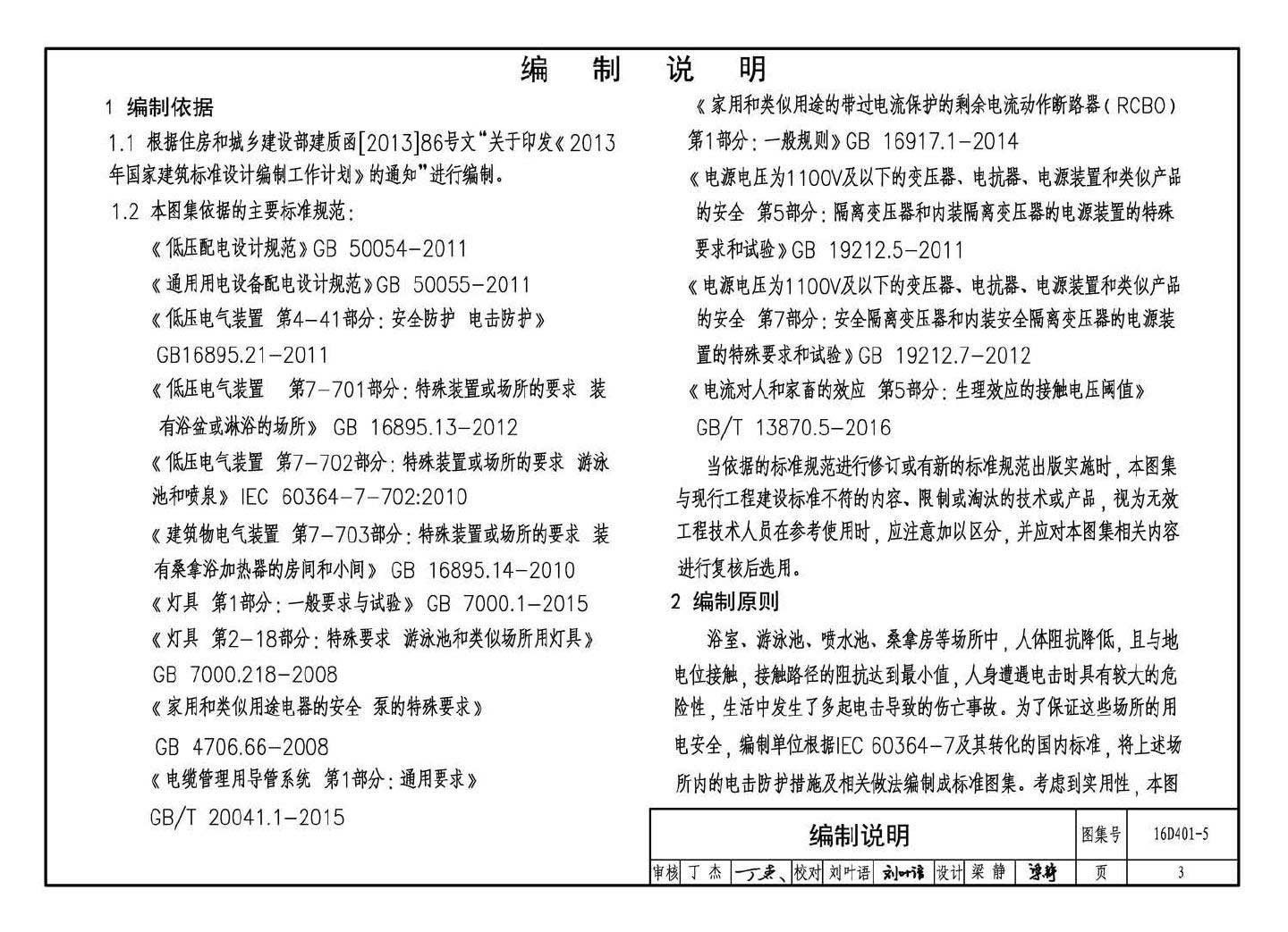 本图集适用于浴室(装有固定浴缸、淋浴)、游泳池、喷水池(可进人和不可进人)、桑拿房和水产品市场及周边区域电击防护措施、配电系统和设备安装要求。