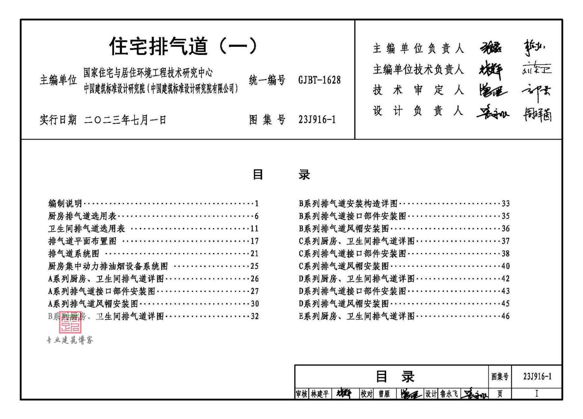 23J916-1《住宅排气道(一)》,替代16J916-1,2023年07月01日发布,2023年07月01日实施,中国标准出版社出版。