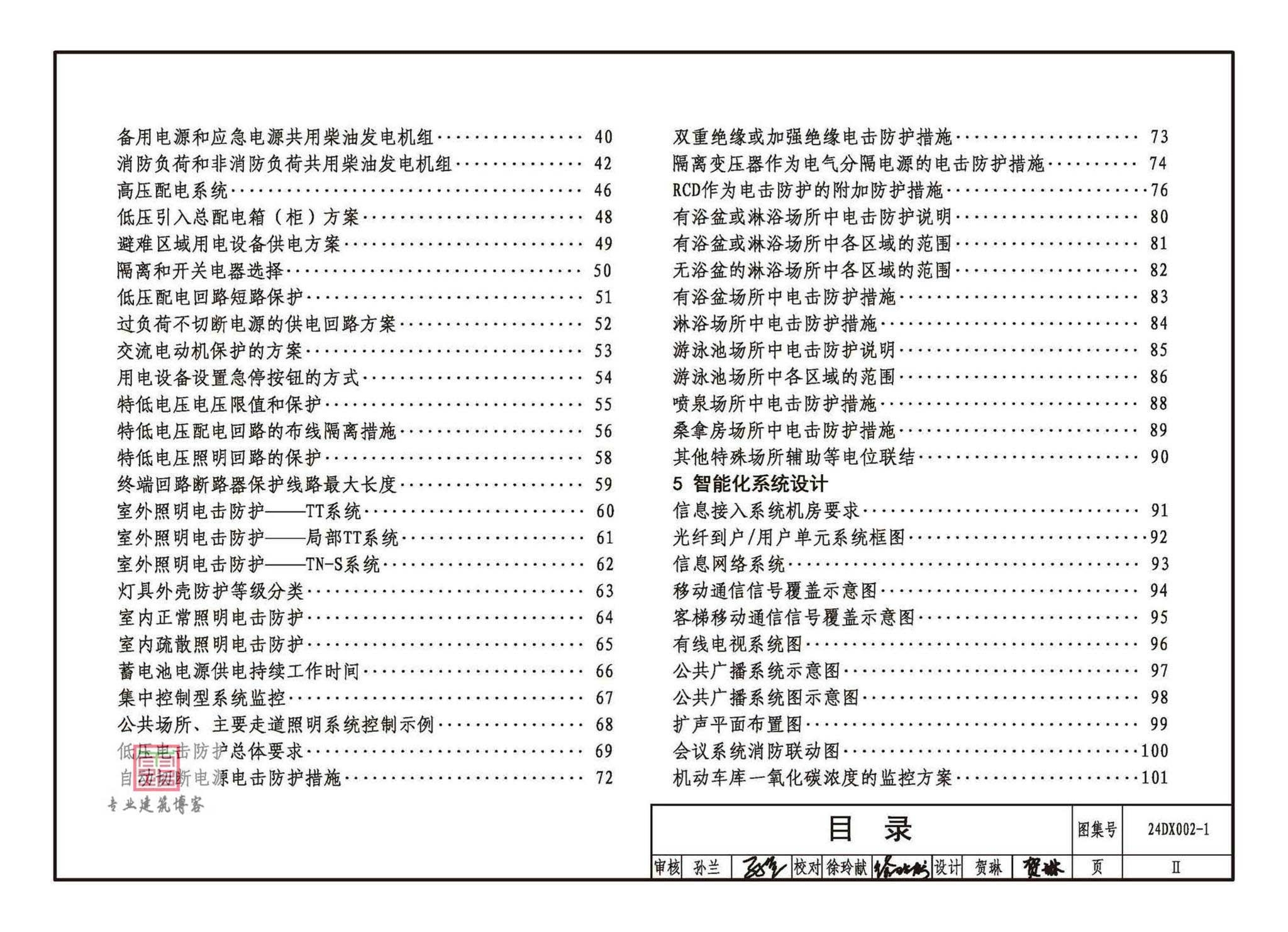 图集内容包括术语、基本规定、电源及用房设计、供配电设计、智能化系统设计、布线系统设计、防雷与接地设计、施工、检验和验收及运行维护,按照规范章节条款顺序,用图示、图表和文字的形式配合规范的条文说明解析规范中的正文。