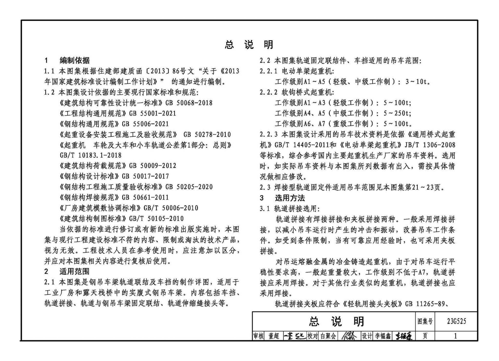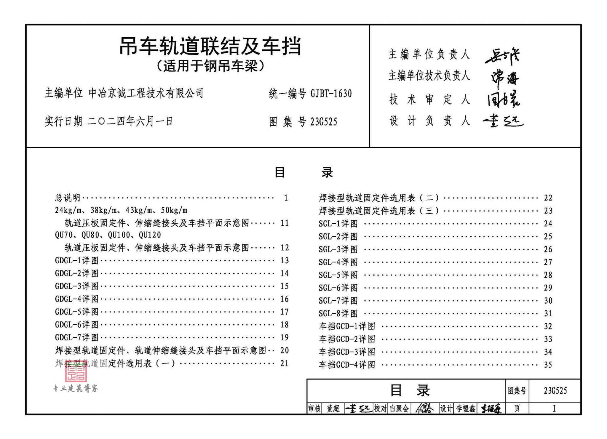 23G525《吊车轨道联结及车挡(适用于钢吊车梁)》,替代05G525,2024年06月01日发布,2024年06月01日实施,中国计划出版社出版。