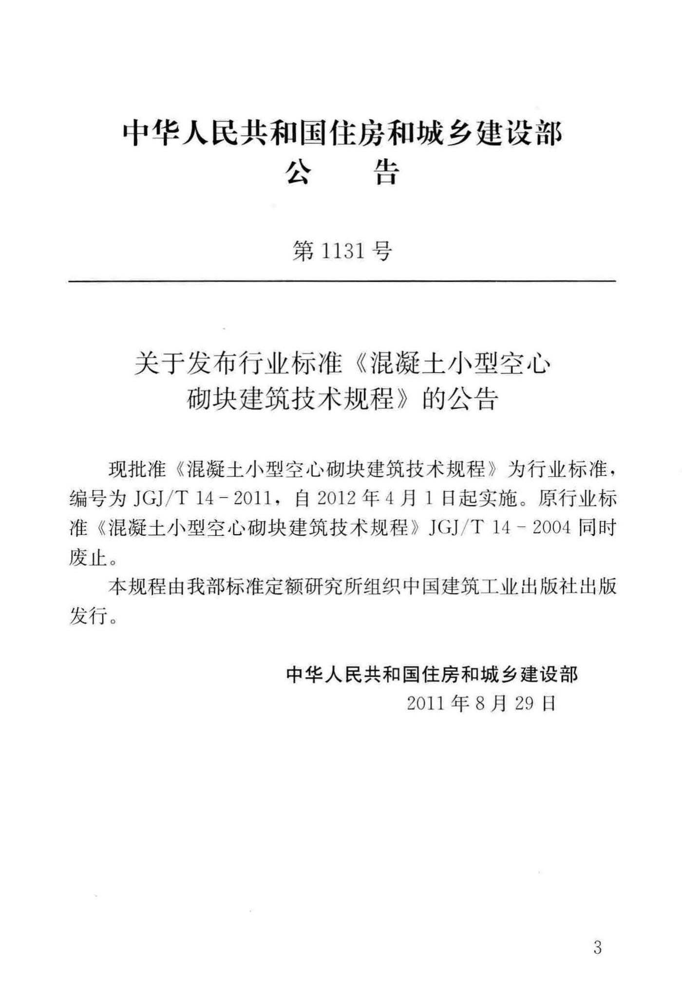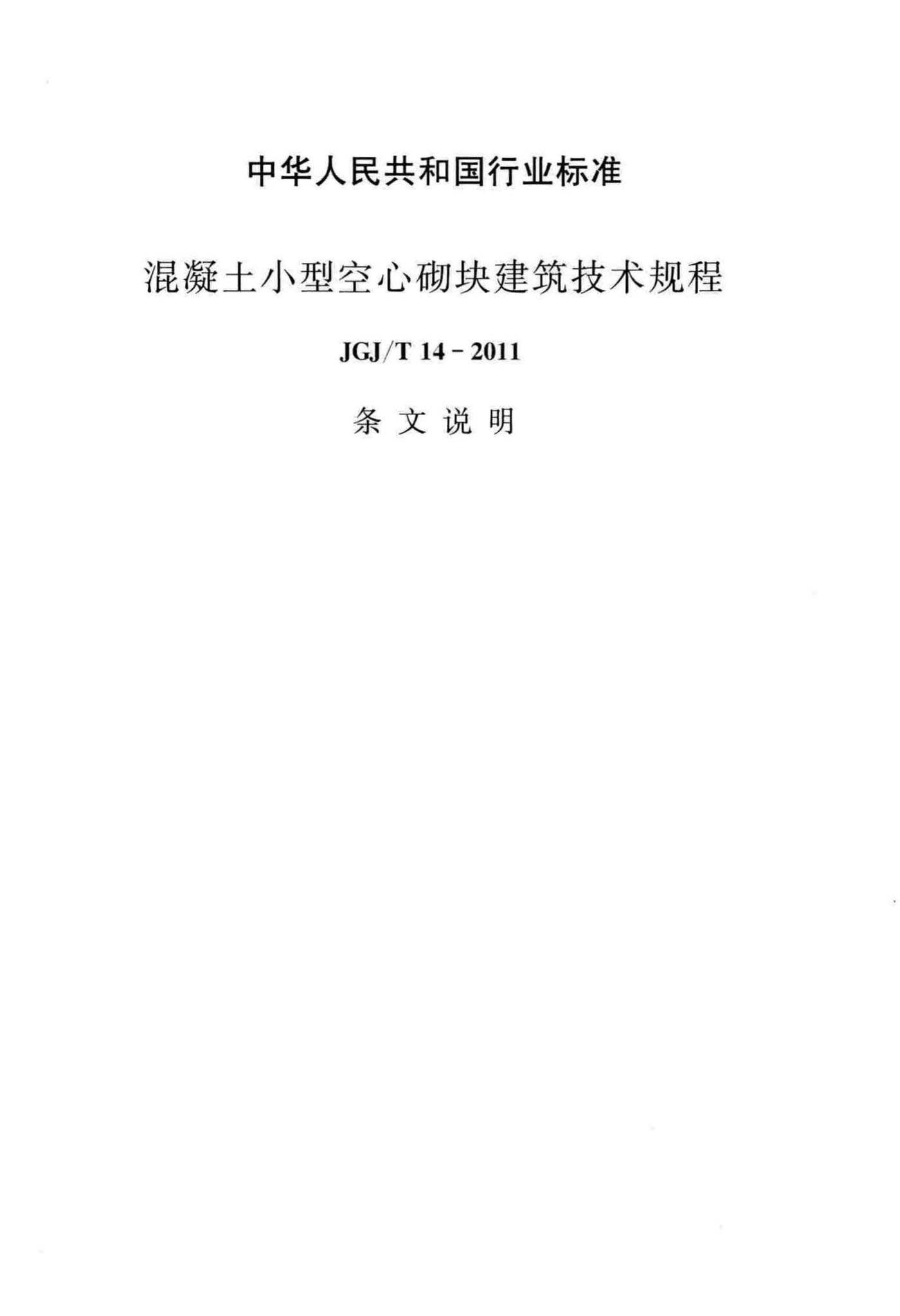 JGJ/T14-2011《混凝土小型空心砌块建筑技术规程》(含条文说明)
