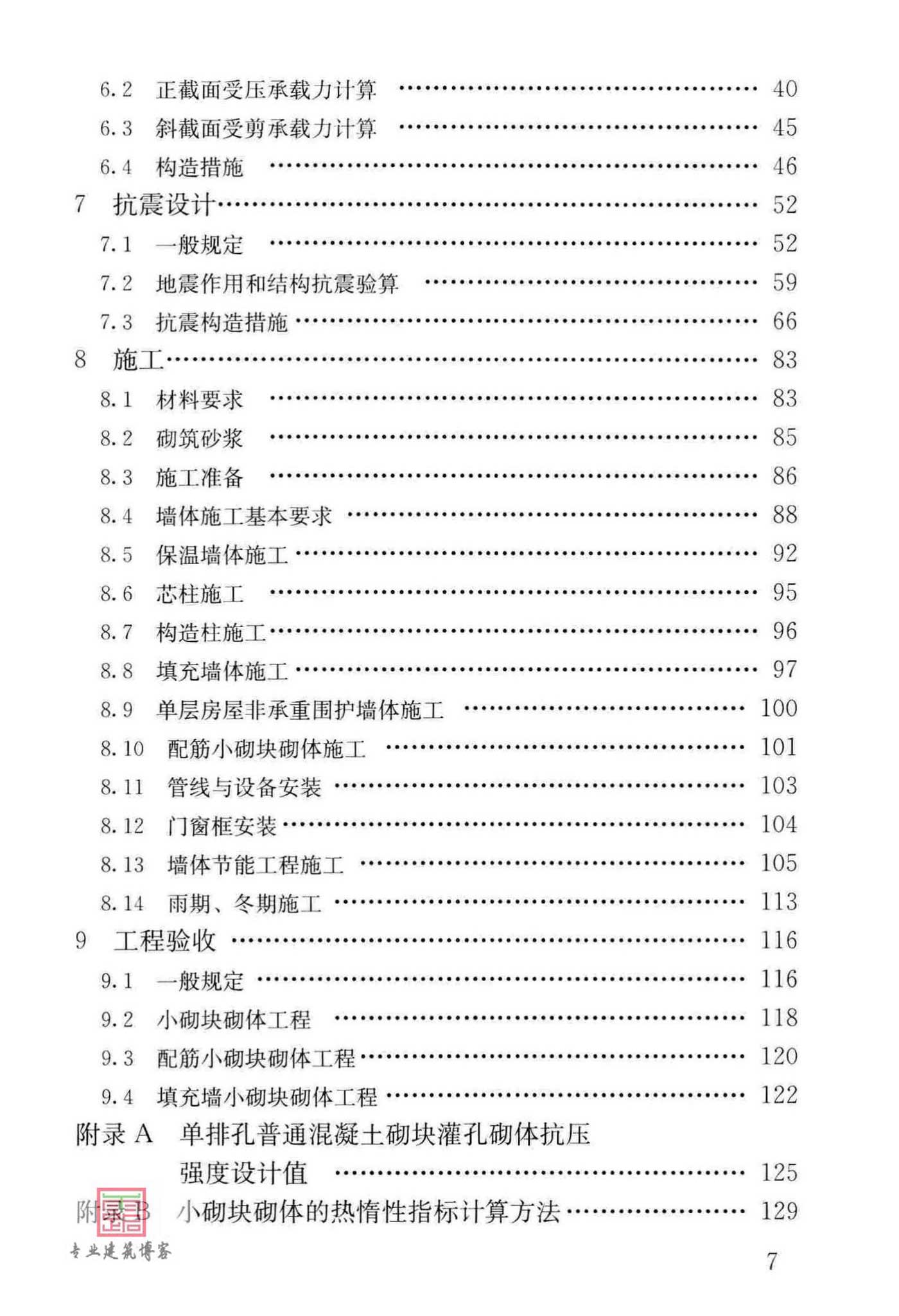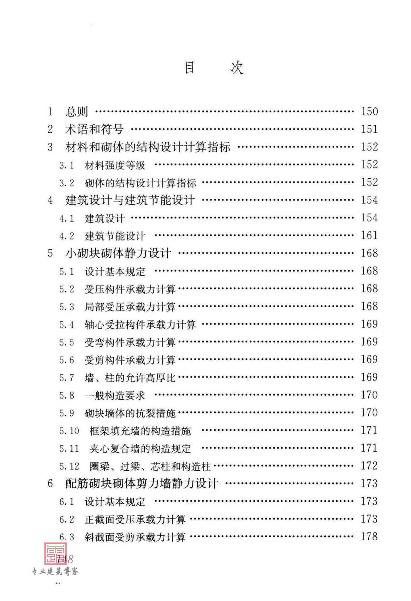 本规程主要内容:1、总则;2、术语和符号;3、材料和砌体的结构设计计算指标;4、建筑设计与建筑节能设计;5、小砌块砌体静力设计;6、配筋砌块砌体剪力墙静力设计;7、抗震设计;8、施工和工程验收等。