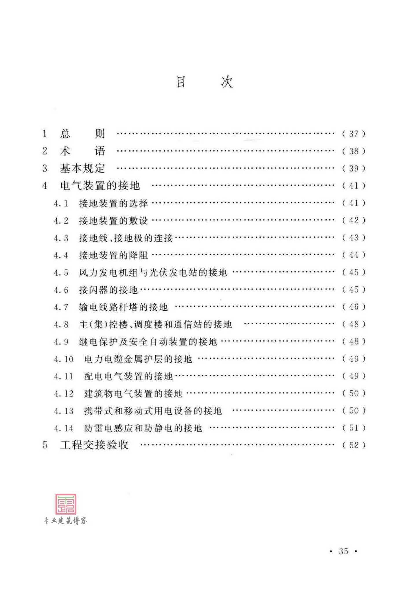 本规范共分5章,其主要内容包括:1、总则;2、术语;3、基本规定;4、电气装置的接地;5、工程交接验收等。