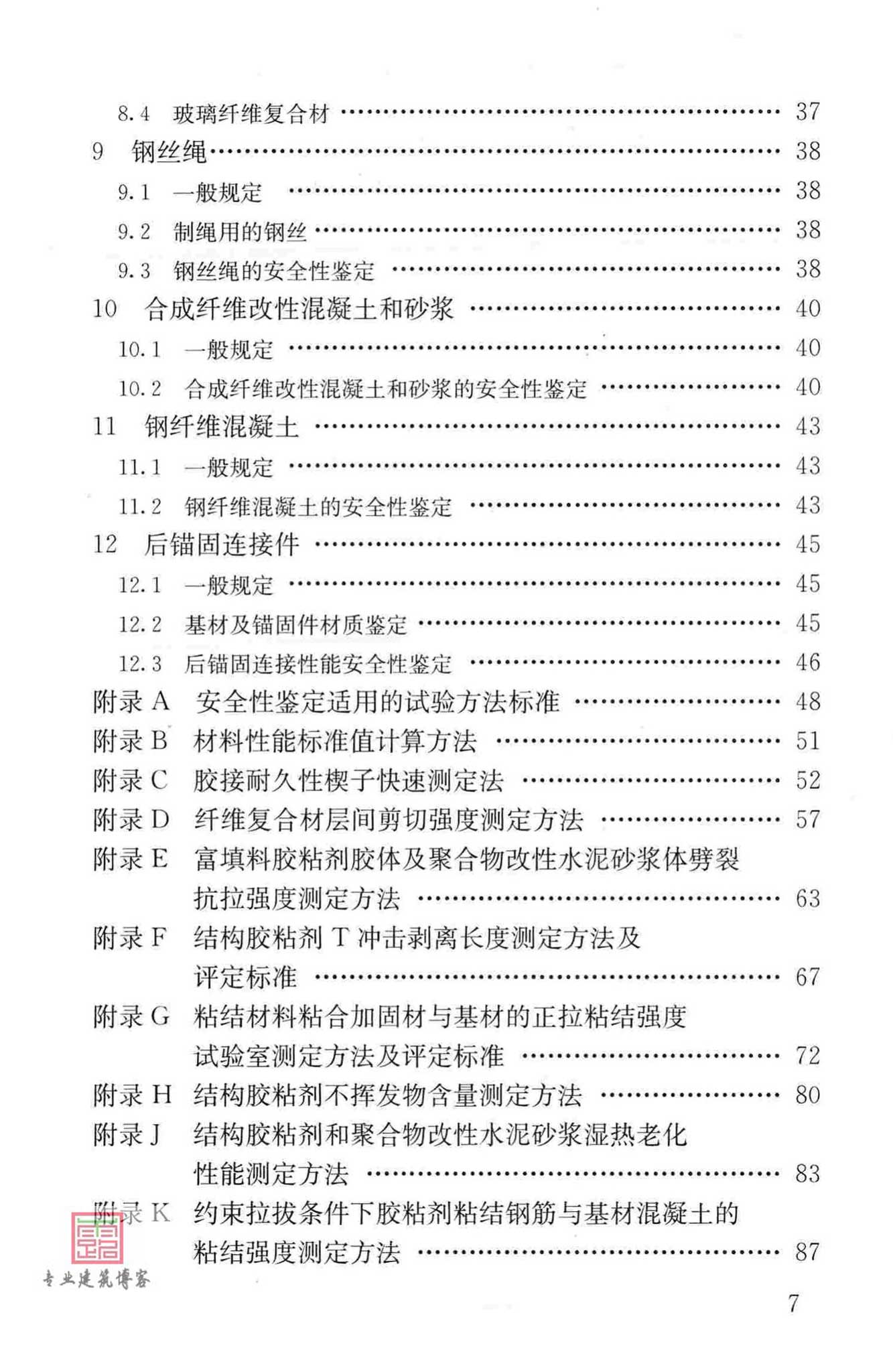 本规范主要技术内容包括:1、总则;2、术语;3、基本规定;4、结构胶粘剂;5、裂缝注浆料;6、结构加固用水泥基灌浆料;7、结构加固用聚合物改性水泥砂浆;8、纤维复合材;9;钢丝绳;10、合成纤维改性混凝土和砂浆;11、钢纤维混凝土;12、后锚固连接件及附录等。