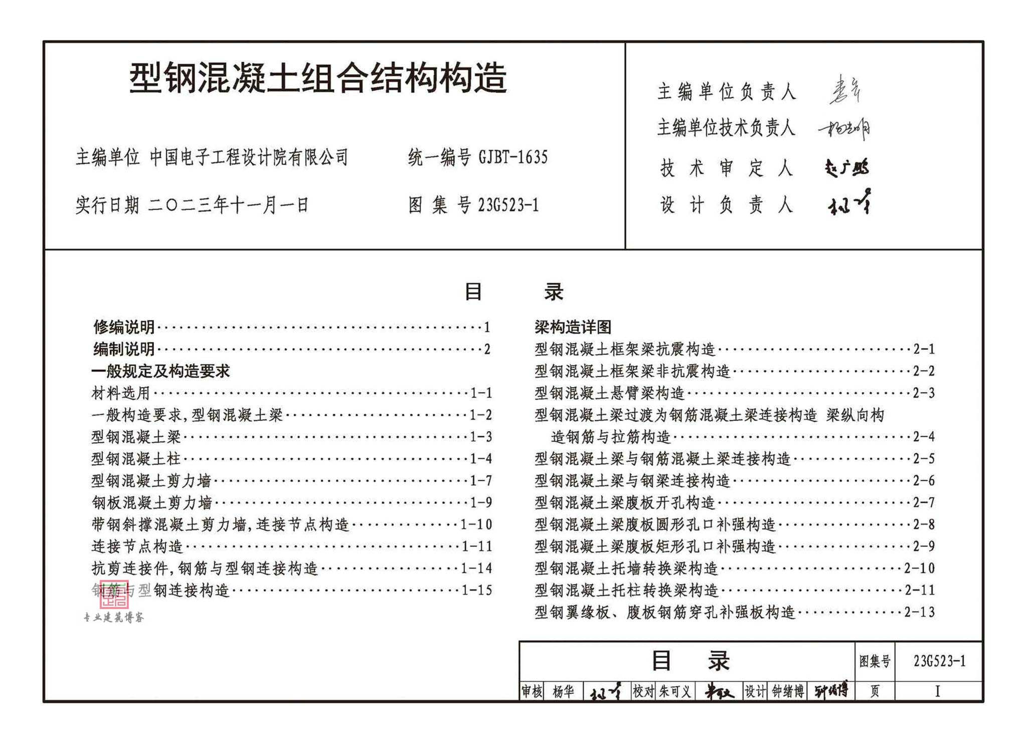 23G523-1《型钢混凝土组合结构构造》,替代 04SG523,2023年11月01日发布,2023年11月01日实施,中国标准出版社出版。