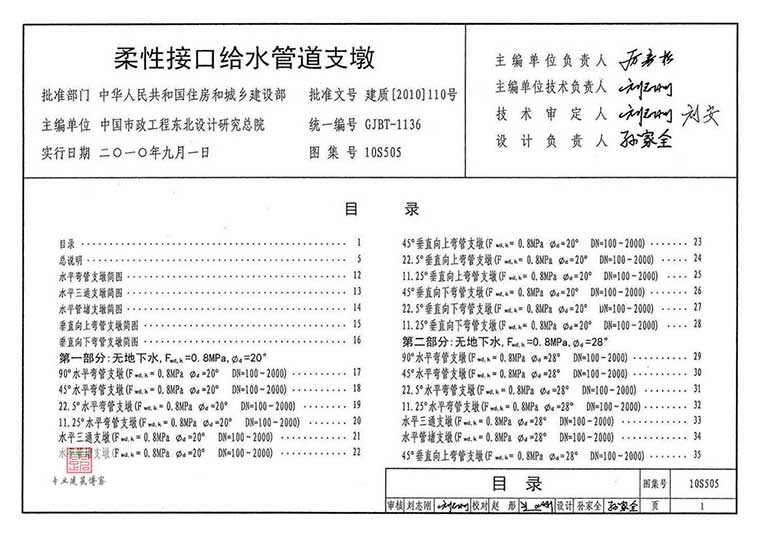 10S505《柔性接口给水管道支墩》,替代03SS505,2010年07月16日发布,2010年09月01日实施,中国计划出版社出版。