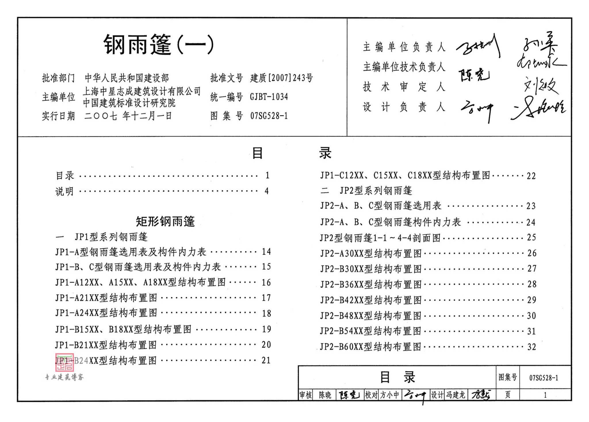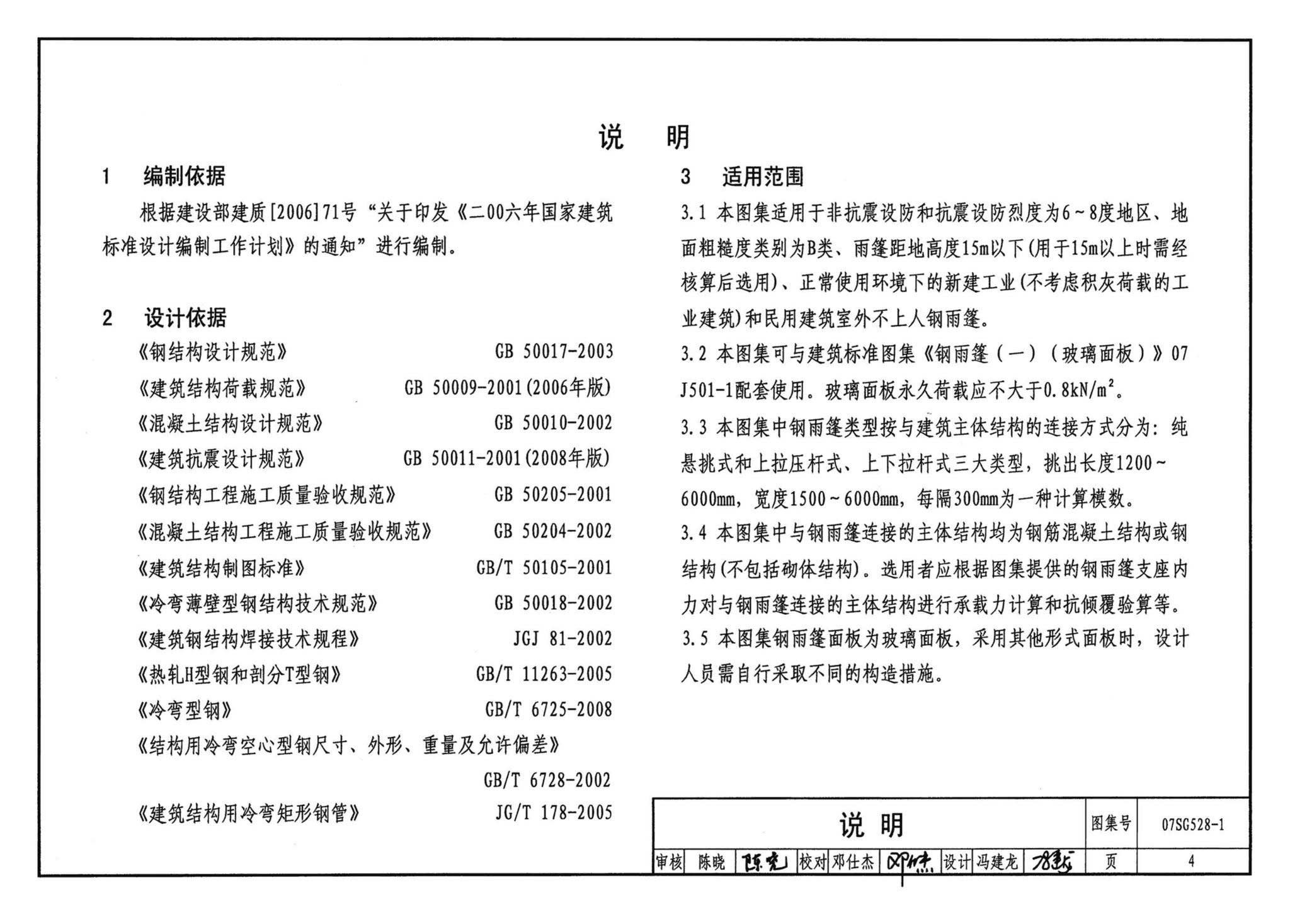 07SG528-1《钢雨篷(一)》,2007年10月22日发布,2007年12月01日实施,中国计划出版社出版。
