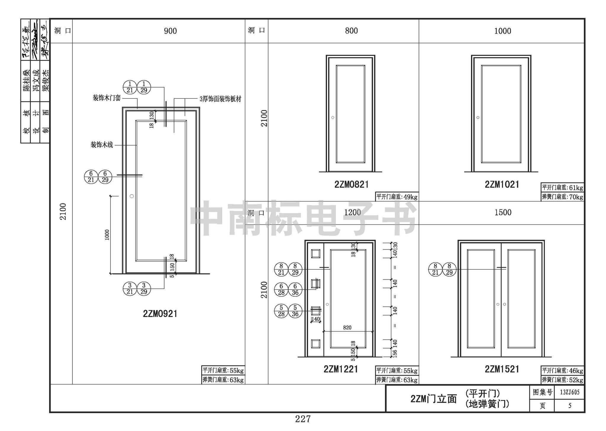 4、本图集所提供的门扇重量为参考重量,除折叠门为单边重量外,均为木门单扇重量。