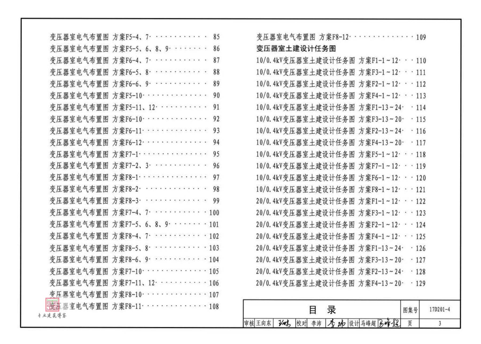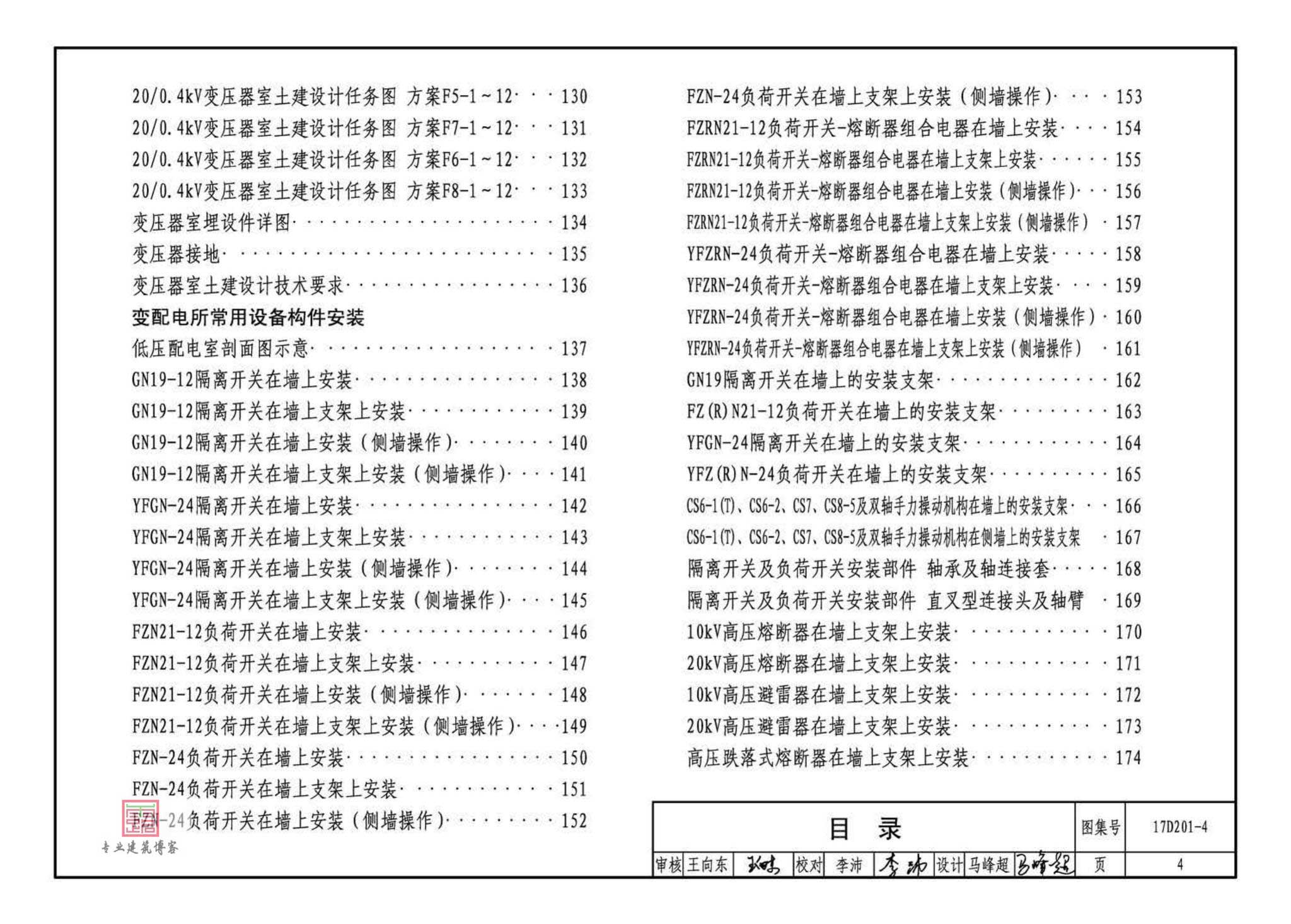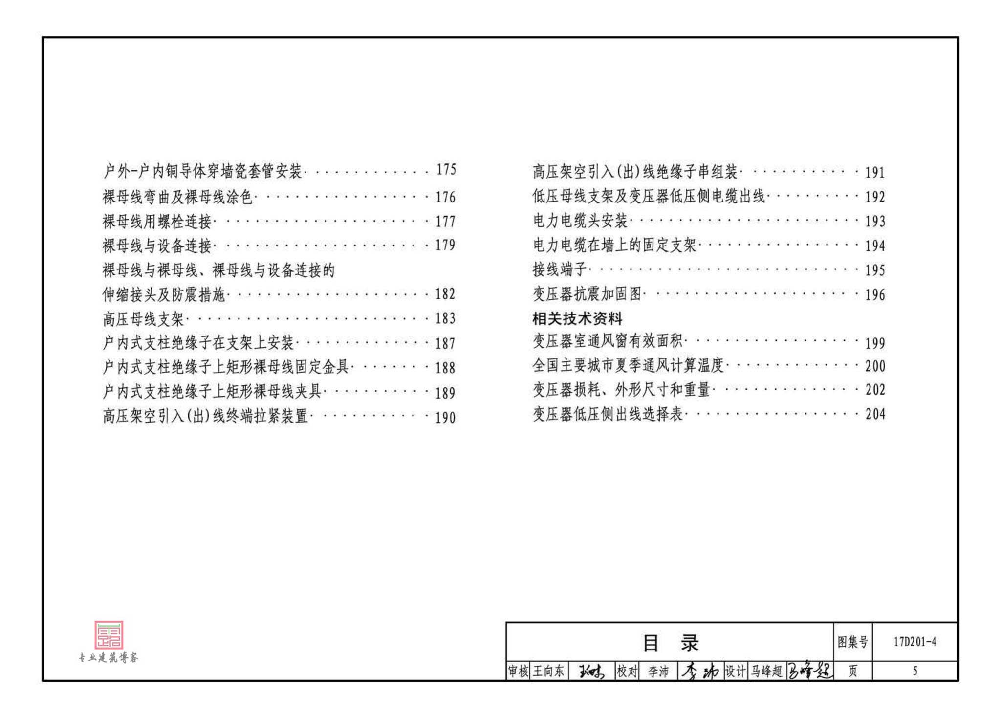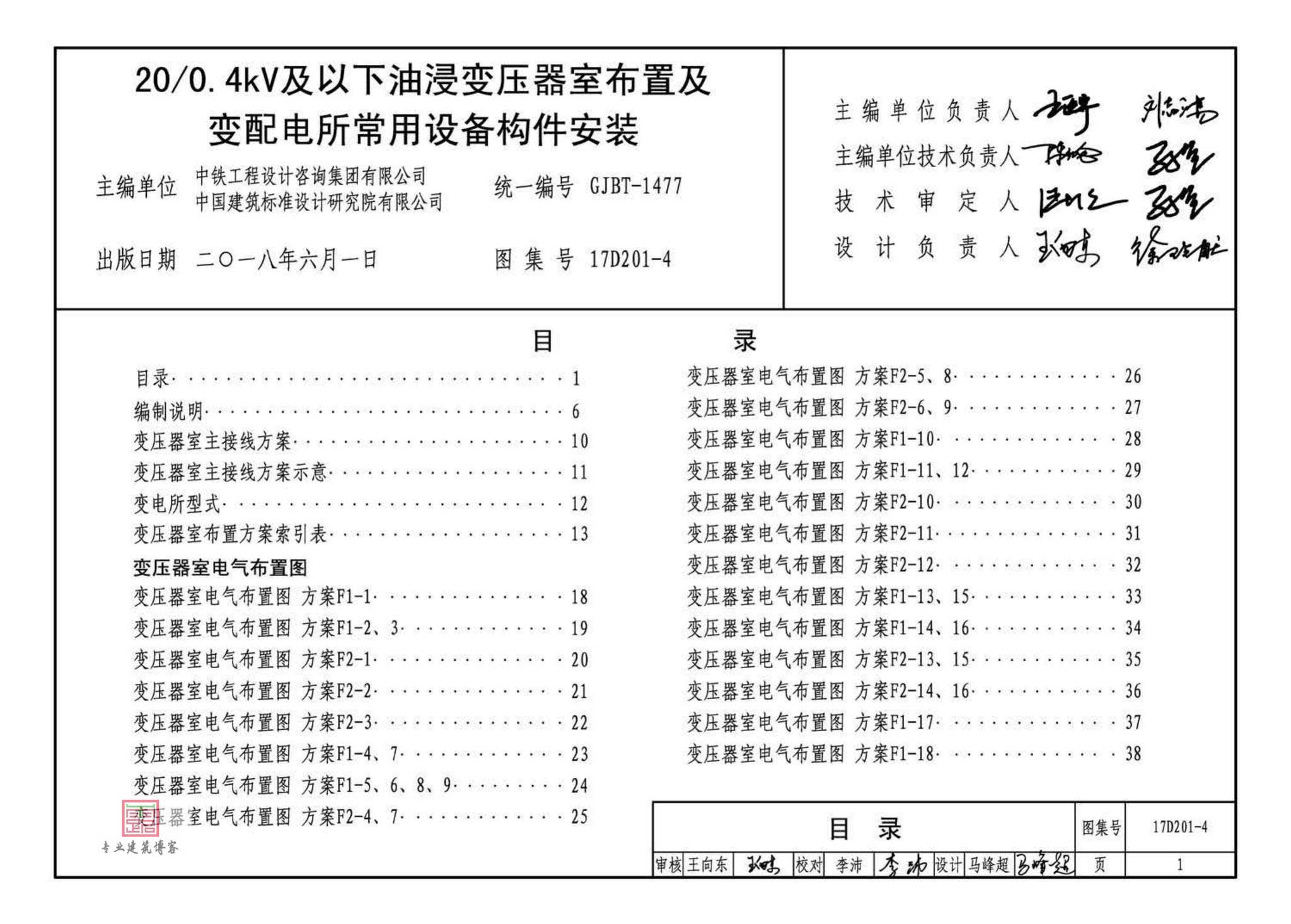 17D201-4《20/0.4kV及以下油浸变压器室布置及变配电所常用设备构件安装》,替代03D201-4,2018年06月01日实施,中国计划出版社出版。