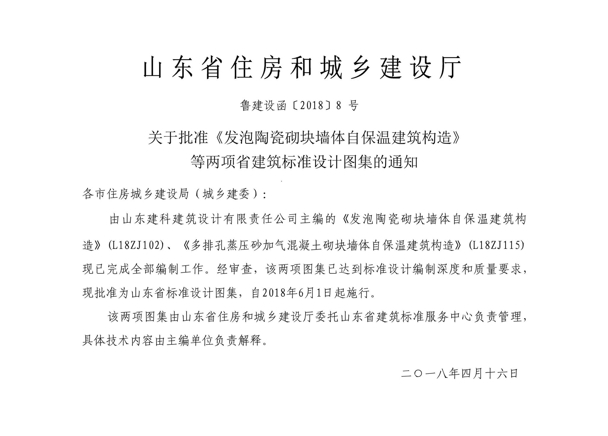 L18ZJ102《发泡陶瓷砌块墙体自保温建筑构造》,2018年04月16日发布,2018年06月01日实施。