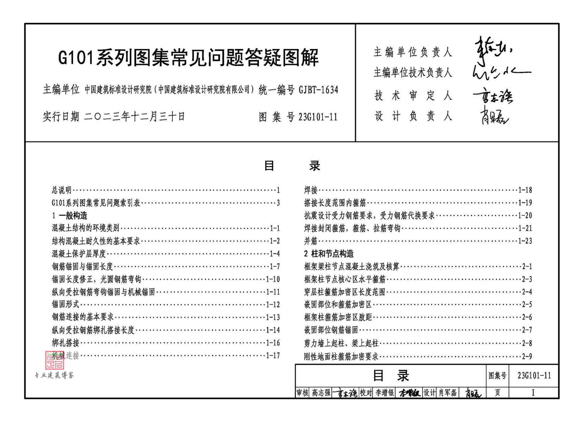 23G101-11《G101系列图集常见问题答疑图解》,替代17G101-11,2023年12月30日实施,中国计划出版社出版。