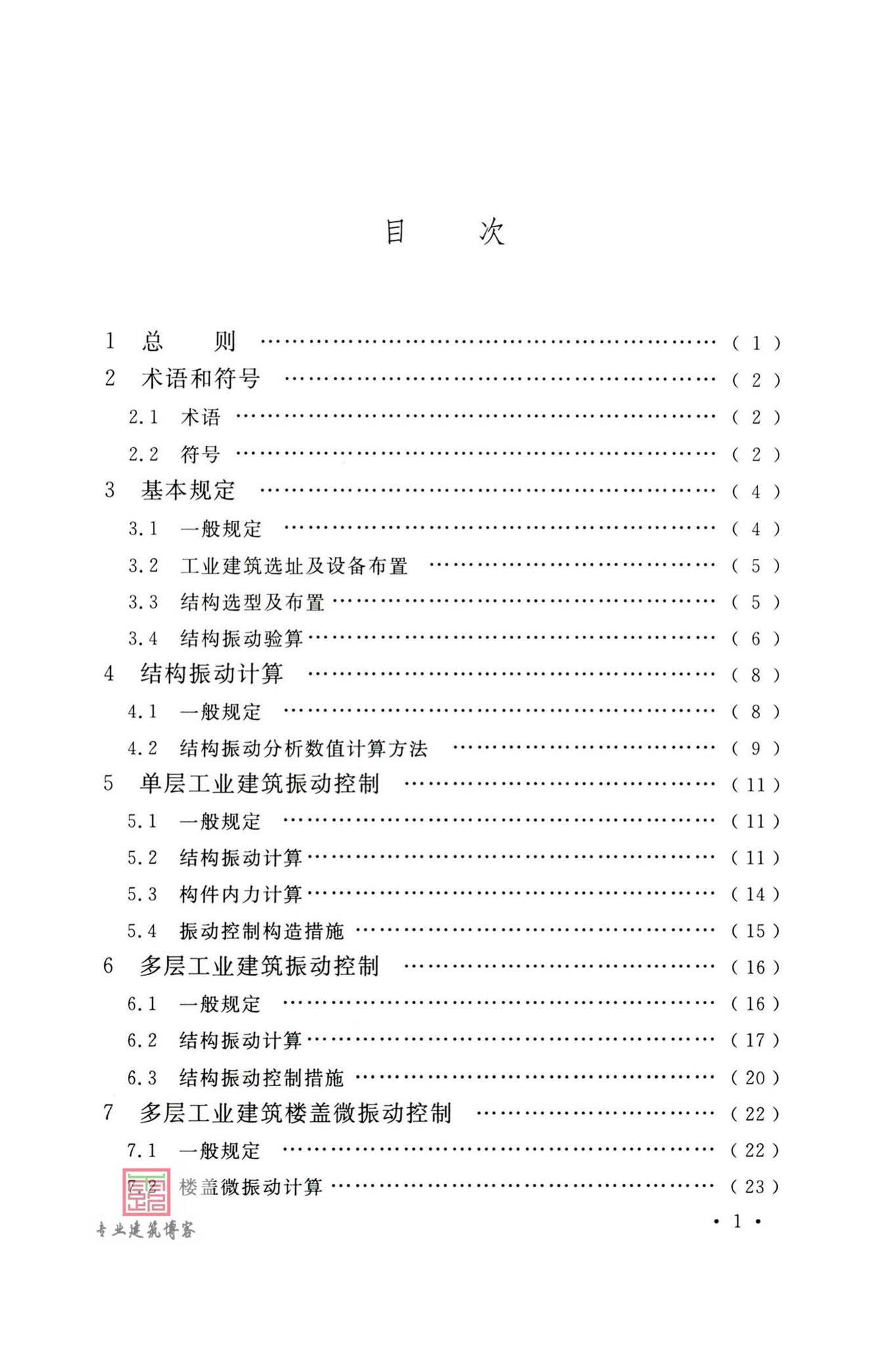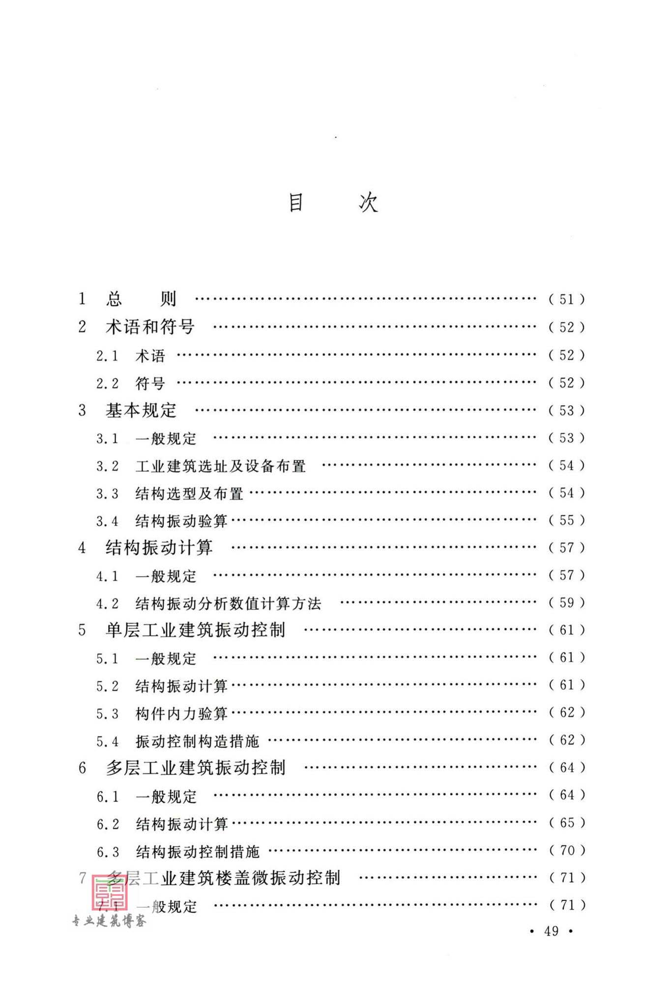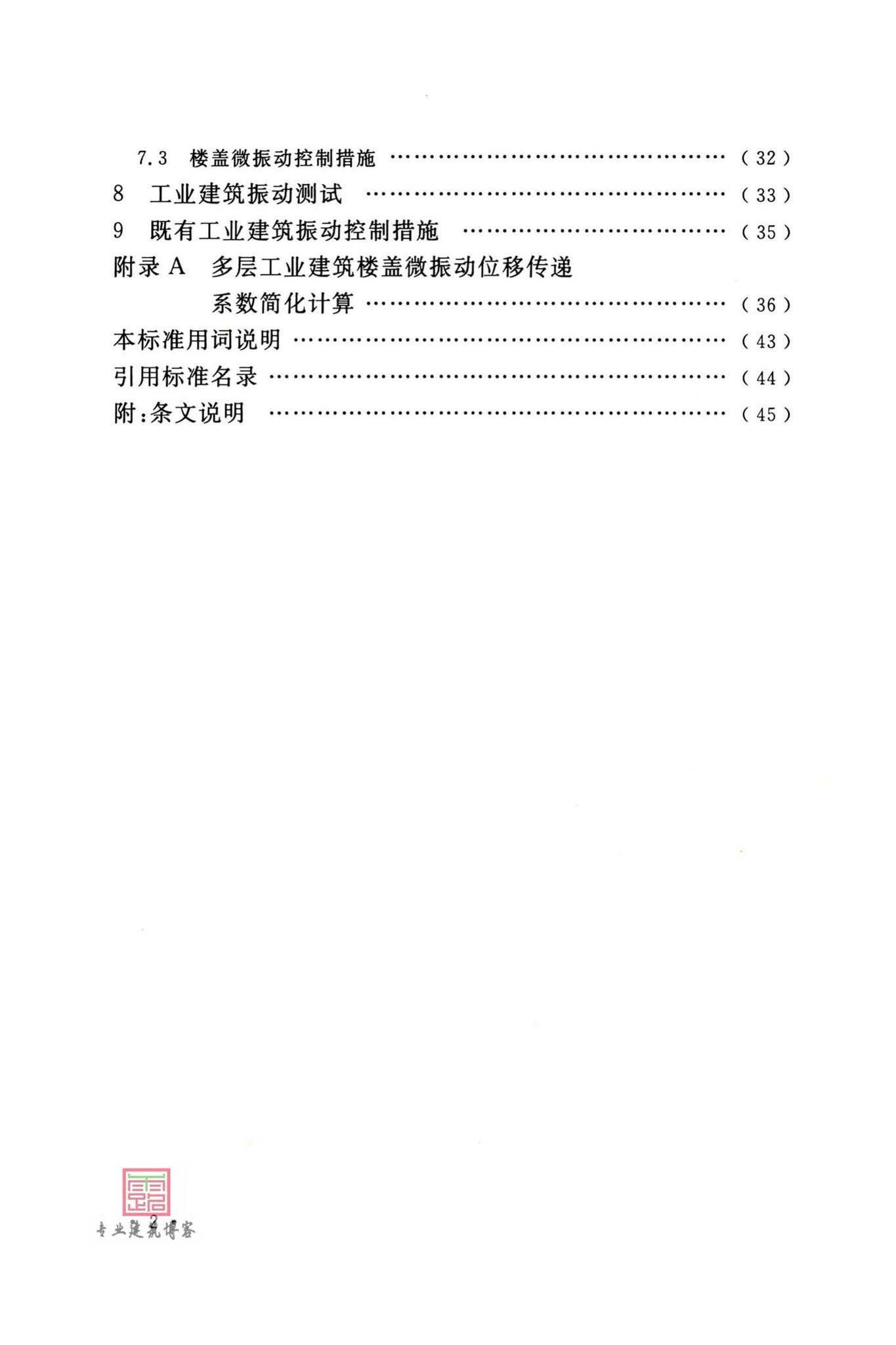 本标准的主要技术内容是:总则、术语和符号、基本规定、结构振动计算、单层工业建筑振动控制、多层工业建筑振动控制、多层工业建筑楼盖微振动控制、工业建筑振动测试、既有工业建筑振动控制措施等。