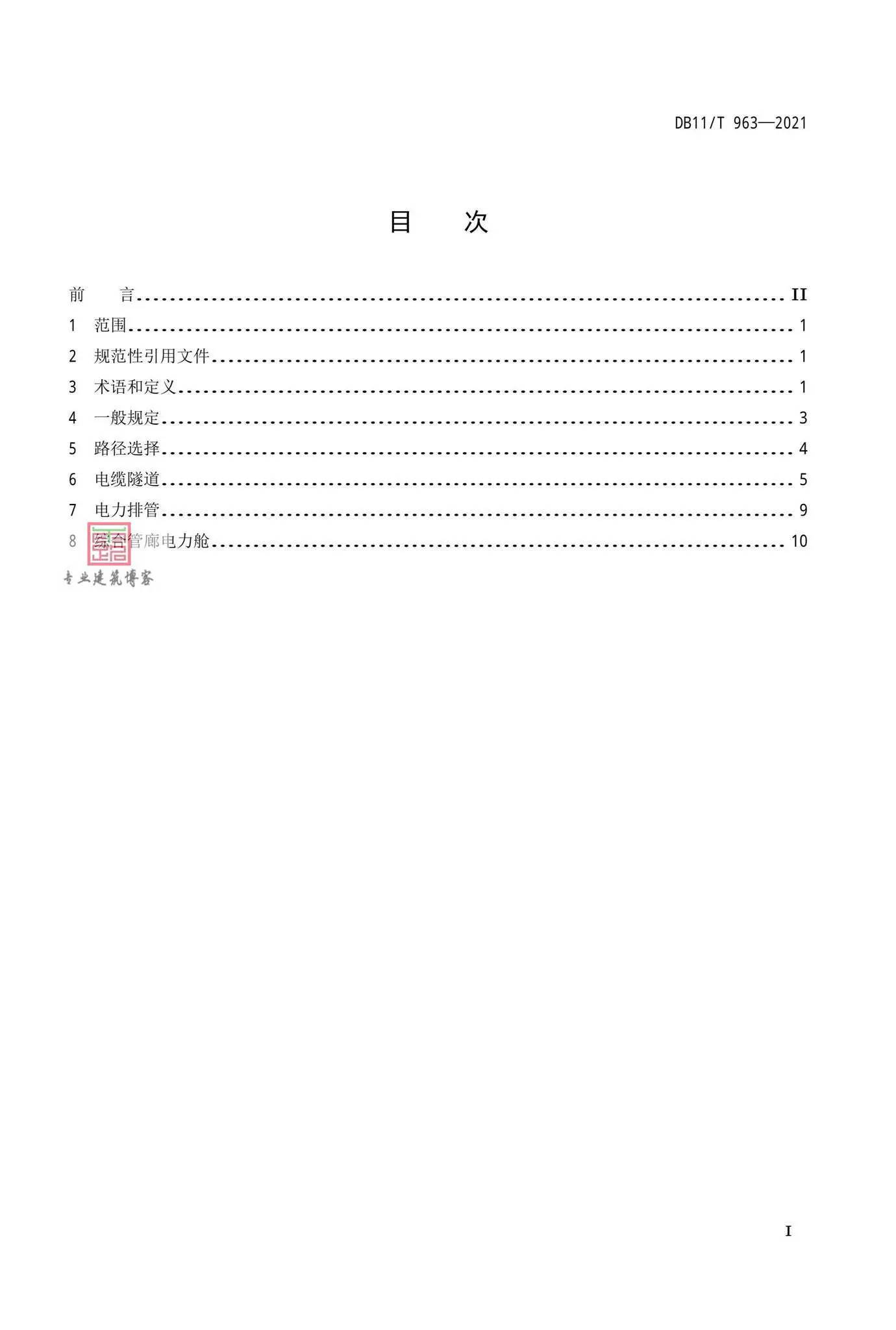 主要内容包括:1、范围;2、规范性引用文件;3、术语和定义;4、一般规定;5、路径选择;6、电缆隧道;7、电力排管;8、综合管廊电力舱等内容。