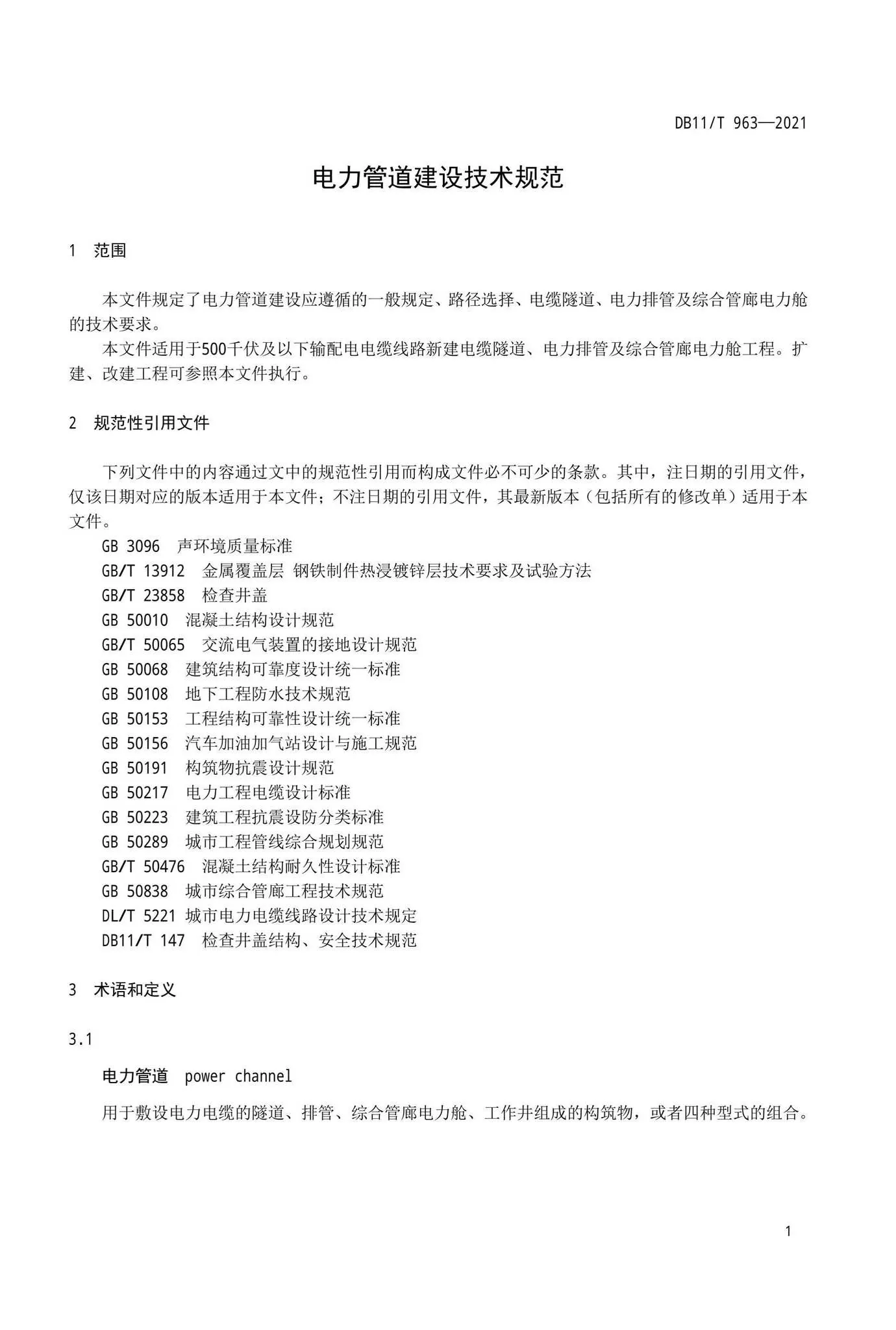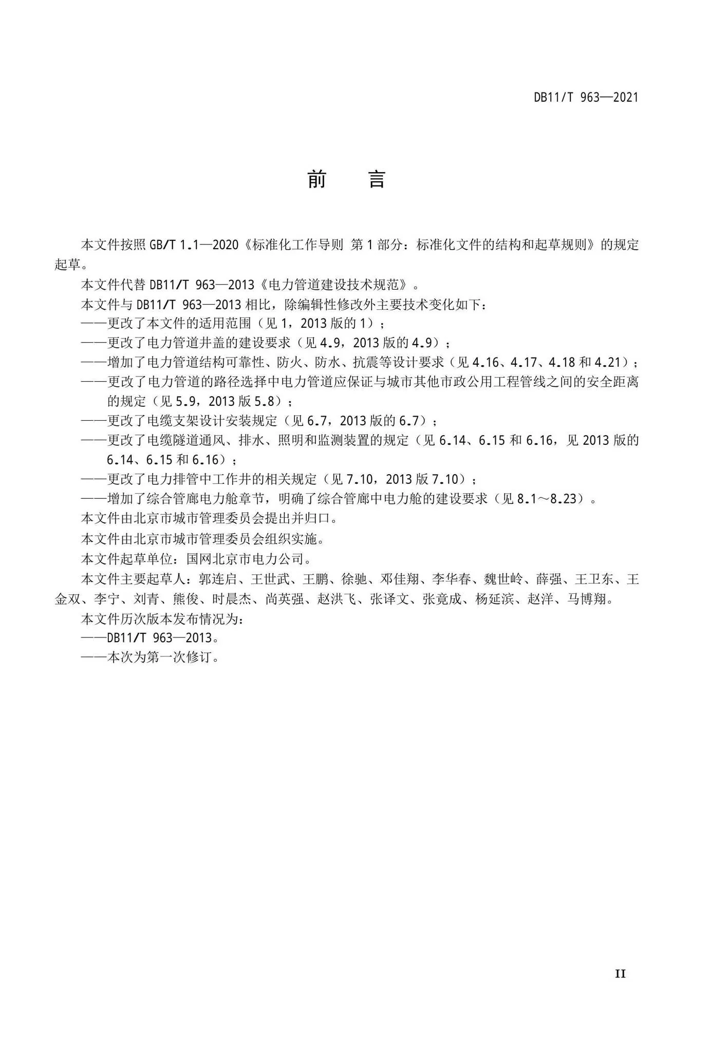 DB11/T963-2021《电力管道建设技术规范》,替代DB11/T963-2013,2021年09月24日发布,2022年01月01日实施,北京市市场监督管理局发布。